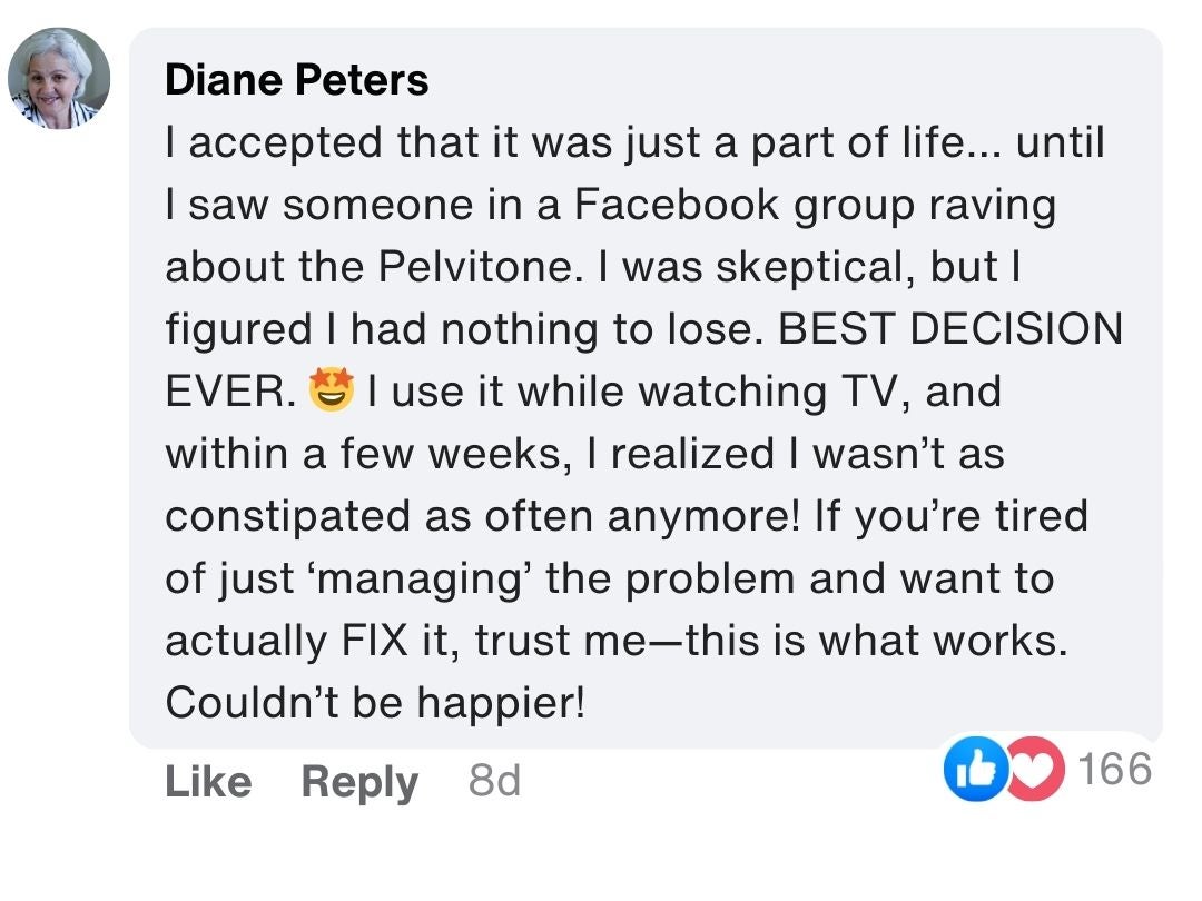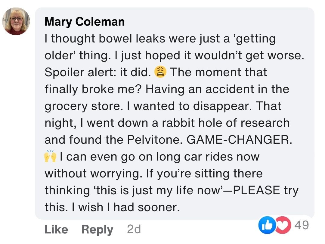 I used to joke that my bowel had a personal vendetta against me because I was up ALL night running to the bathroom. 🚽💨 It was exhausting. I felt groggy all the time, and I swear it was making me crankier. 😂 I saw the Pelvitone and figured, ‘why not?’ BEST DECISION EVER. I finally feel rested. And my husband? He’s thrilled I’m not waking him up anymore. 😂